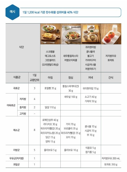 사실 저탄수화물 다이어트 식단으로 철저히 하려해도 비율로는 감이 잘 안옵니다. 실제 체중을 감량을 하려면 평소보다 하루에 500~1,000kcal는 덜 먹어야 성공할 수 있습니다. 대한비만학회에서 제공한 하루 1,500kcal와 2,000kcal로 먹는 사람이 실천 가능한 저탄수화물 식단 참고하시면 좋을것 같습니다.